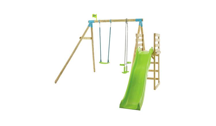 Buy Tp Kite Wooden Kids Double Swing Set With 8ft Wavy Slide Swings Argos
